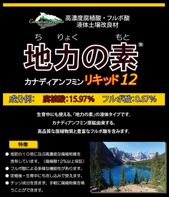 ![カナディアンフミン 地力の素リキッド12 [高濃度腐植酸15.97%・フルボ酸0.67%抽出液] - 1L](https://baseec-img-mng.akamaized.net/images/item/origin/661442ce37a49d2758cdc67292493ebc.png?imformat=generic)