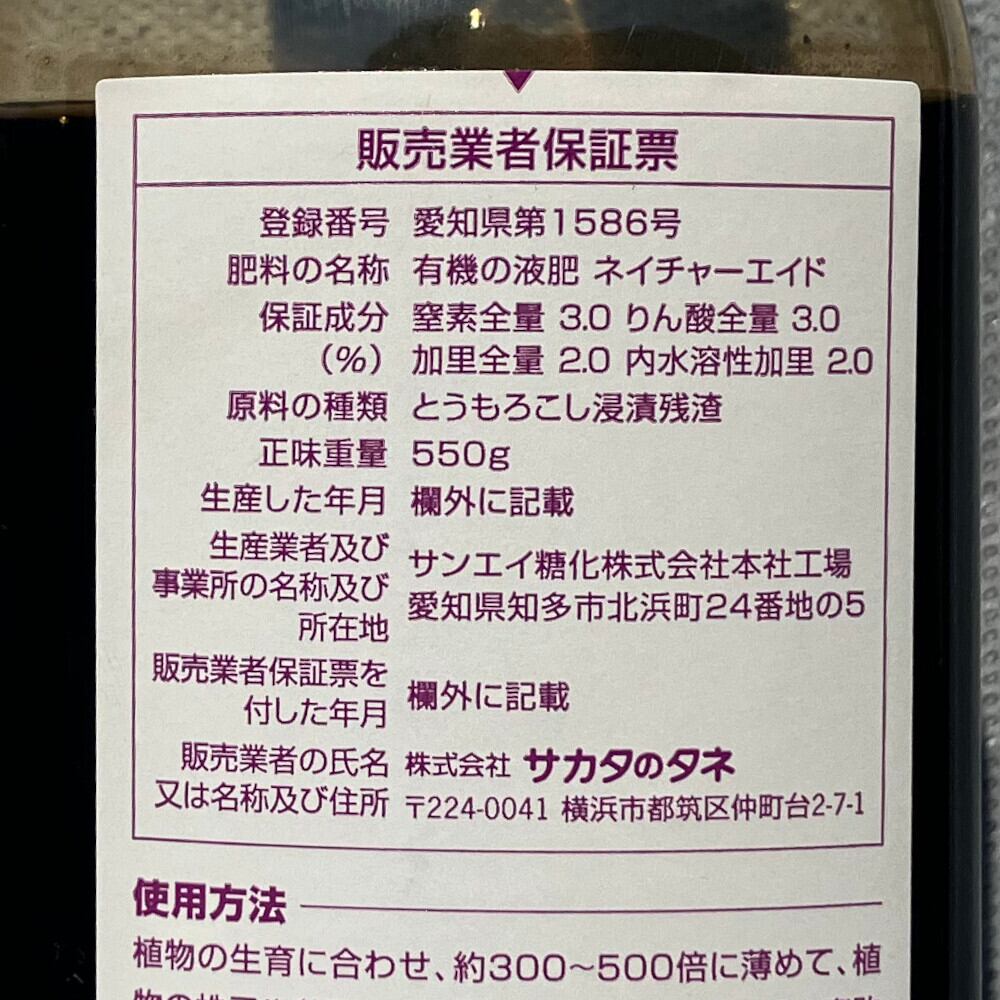 ![ネイチャーエイド [植物性アミノ酸 液肥] - 550g](https://baseec-img-mng.akamaized.net/images/item/origin/f11adca65eaee58522d41d2a0027df40.jpg?imformat=generic)