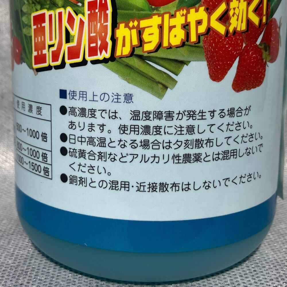 ・「石灰硫黄合剤」「アルカリ性農薬」と混合すると、有毒ガスが発生する恐れがあり、危険ですから混用は行わないでください。