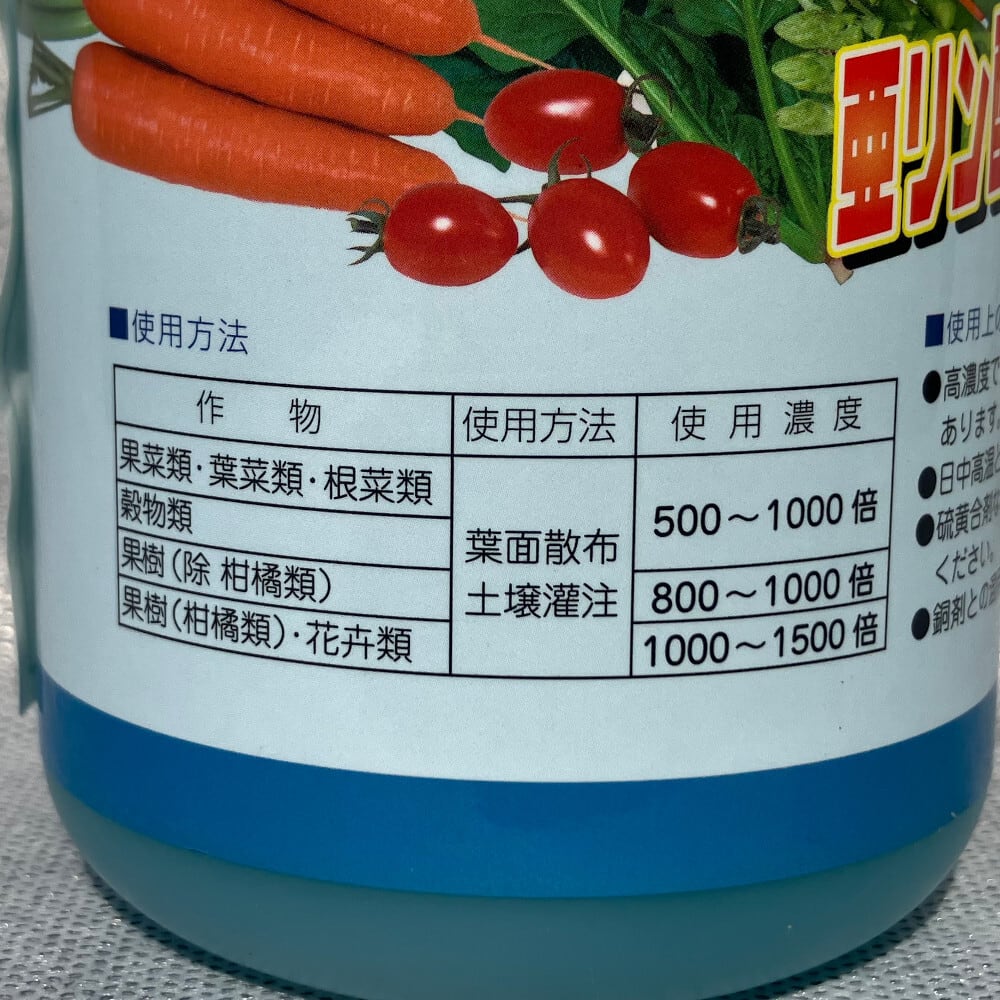 窒素中断、徒長防止を目的に使用される場合は500倍前後の希釈でご利用ください。