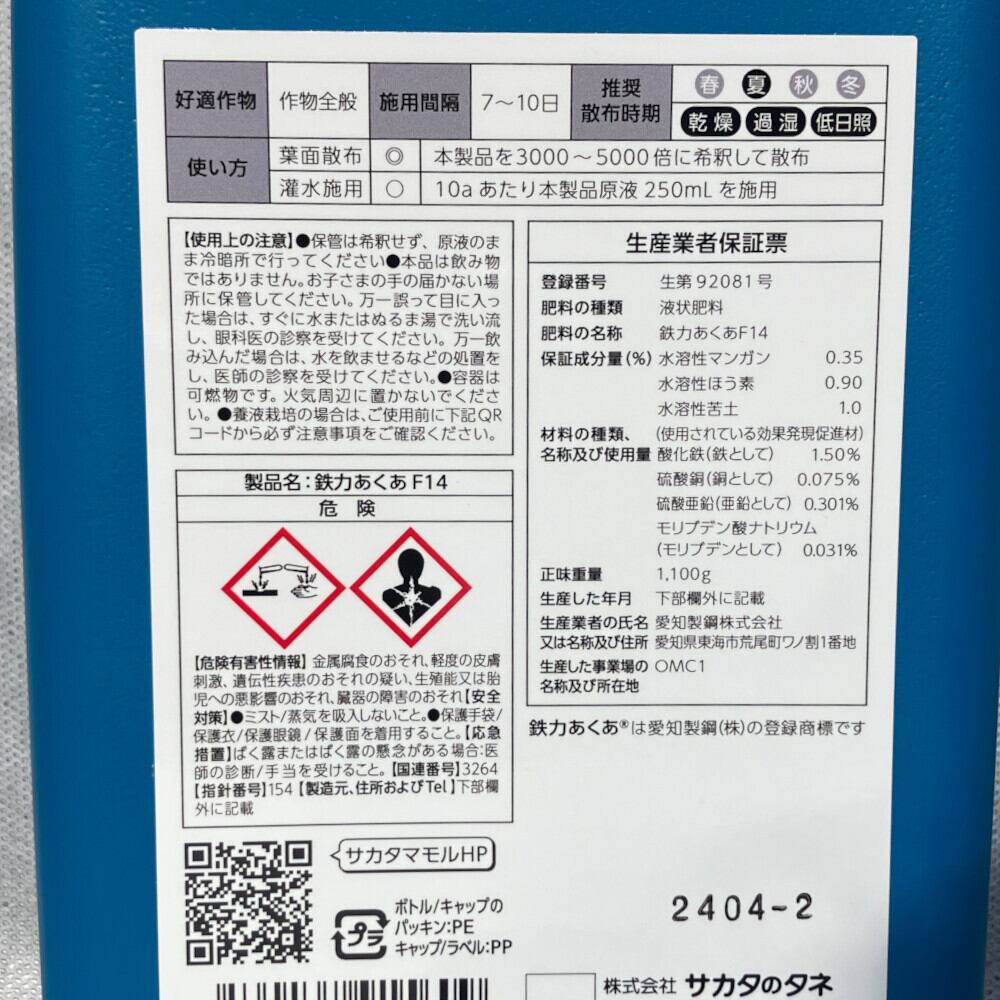 ![鉄力あくあF14 [2価鉄+微量要素 液肥] - 1L](https://baseec-img-mng.akamaized.net/images/item/origin/b5ce4c19a87c7b59d64ab4ec784ede85.jpg?imformat=generic)