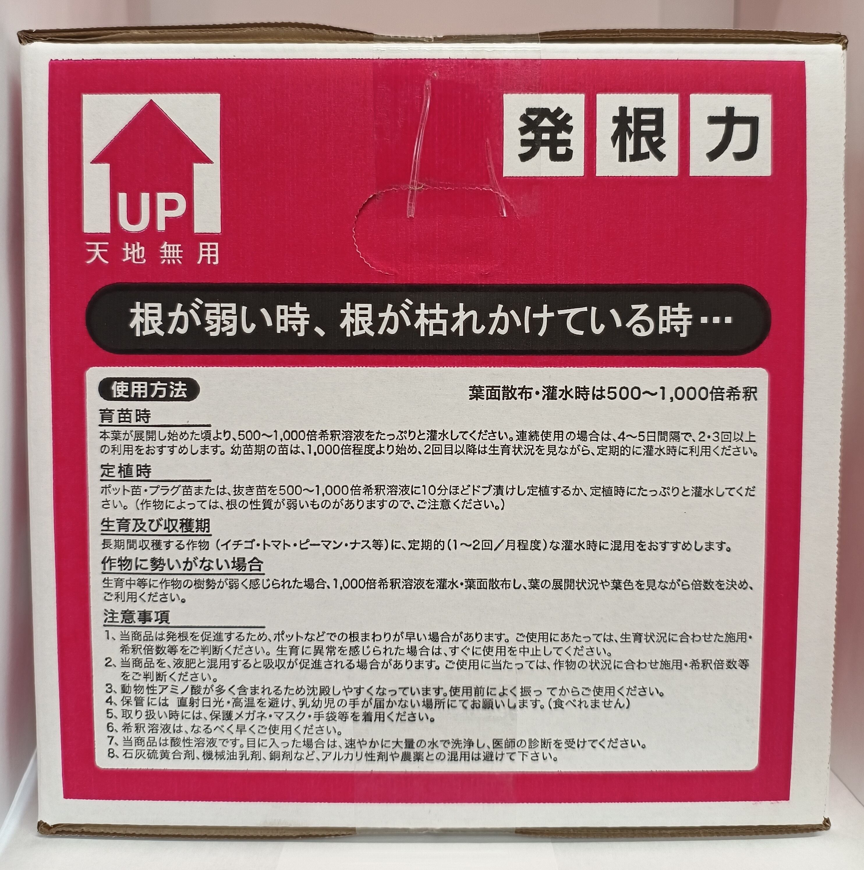作物の根に対し、【250倍希釈】したものを直接灌注してください。